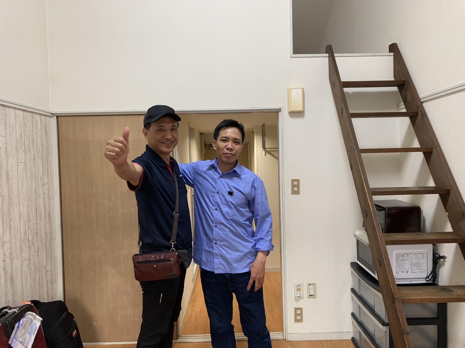 沖縄で農業の技能実習を修了したベトナムの男性は、今年、念願だった牧場に就職しました。ベトナムで獣医をしていたという彼は、牛を見るときやさしい顔になります。当組合の職員が引っ越しのサポートをしたときにパチリ!